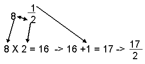 It's easy to multiply 8.5 by 11 inches if you know how to place decimal points. How could we get the same answer by using fractions instead of decimals? Calculate the answer with me. Let's write 8.5 as a fraction instead of a decimal. 8.5 = 8˝ Now we need to change the mixed number into a single fraction. To do that, we multiply and add.