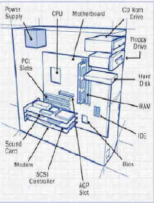 Examine the computer parts that you studied. When you are ready, ride the arrow to the same image but without the names. Print the image, and write in as many part names as you can remember. Place the completed work in your folder.