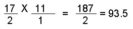 It's easy to multiply 8.5 by 11 inches if you know how to place decimal points. How could we get the same answer by using fractions instead of decimals? Calculate the answer with me. Let's write 8.5 as a fraction instead of a decimal. 8.5 = 8˝ Now we need to change the mixed number into a single fraction. To do that, we multiply and add.
