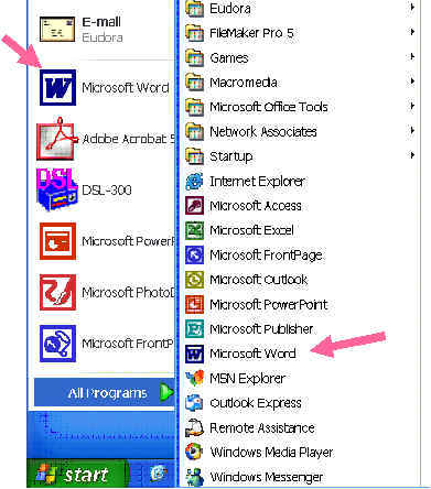 | Rest your cursor (arrow) or mouse on ALL PROGRAMS, and then left-click on Microsoft Word |